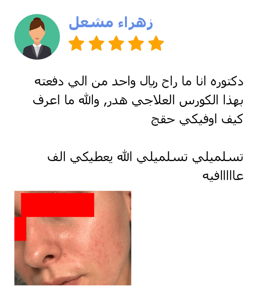 ولاكن فاجأتني ان بشرتي مو عنيده ولاكن العلاجات بالعيادة كانت مو مناسبه لطبيعة بشرتك تماماً .
